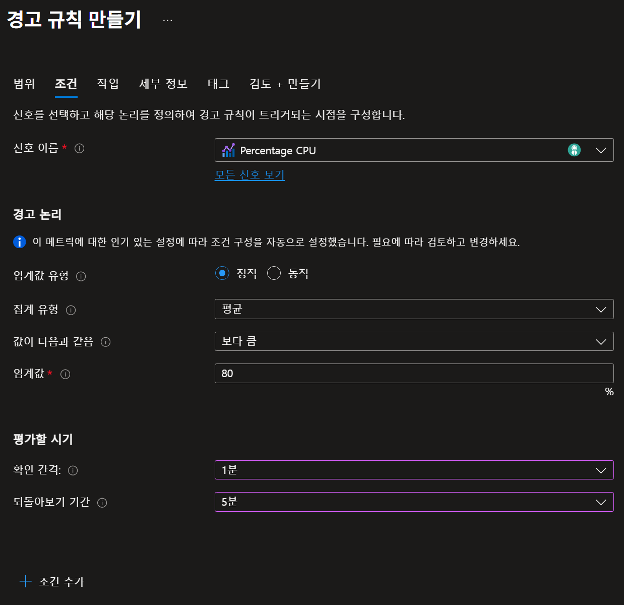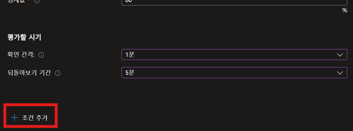 - 지난 5분간 평균 CPU가 80% 이상이면 조건 만족